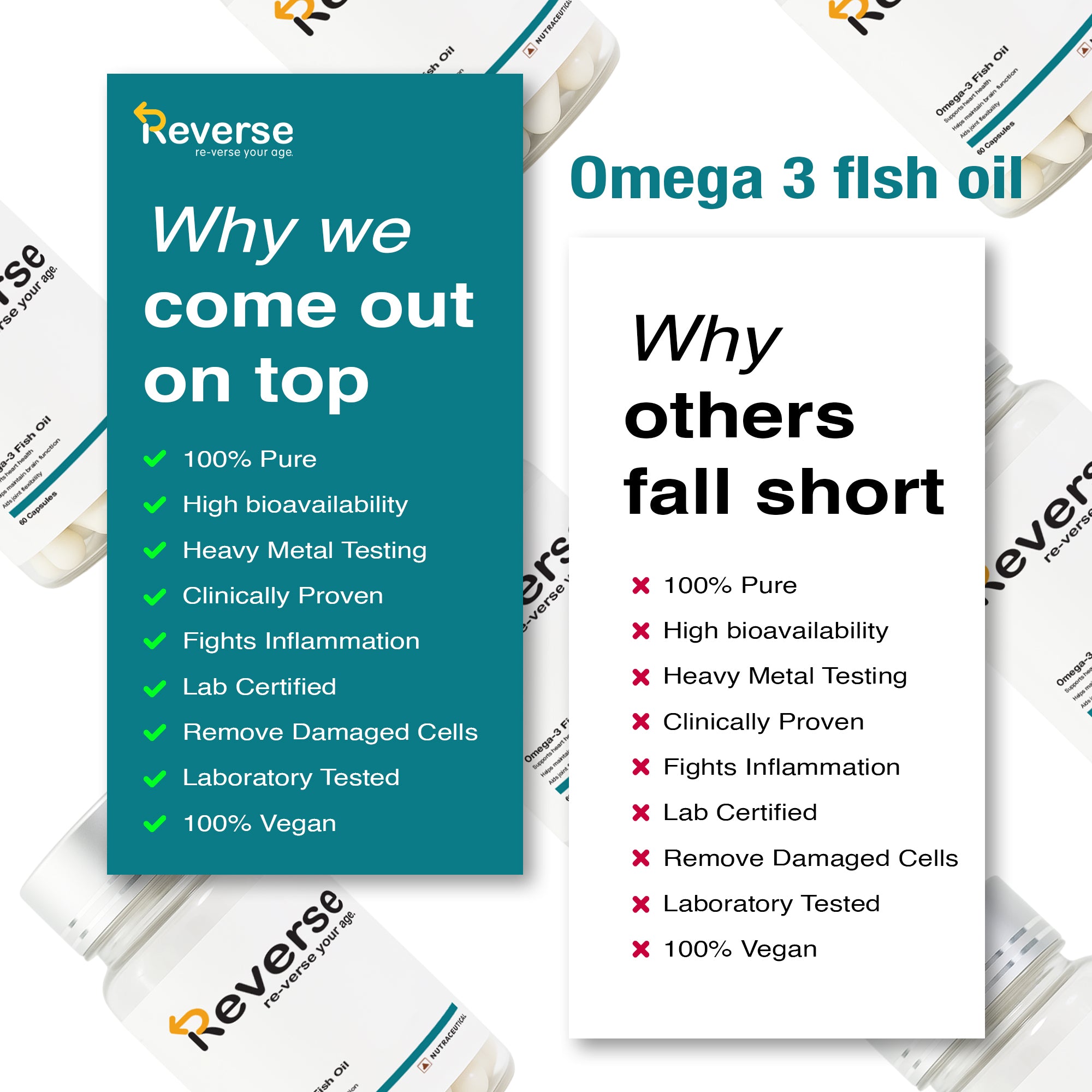 Our Omega-3 Fish Oil supplement delivers high-quality EPA and DHA, two essential fatty acids that contribute to cardiovascular health, cognitive function, and overall wellness.
