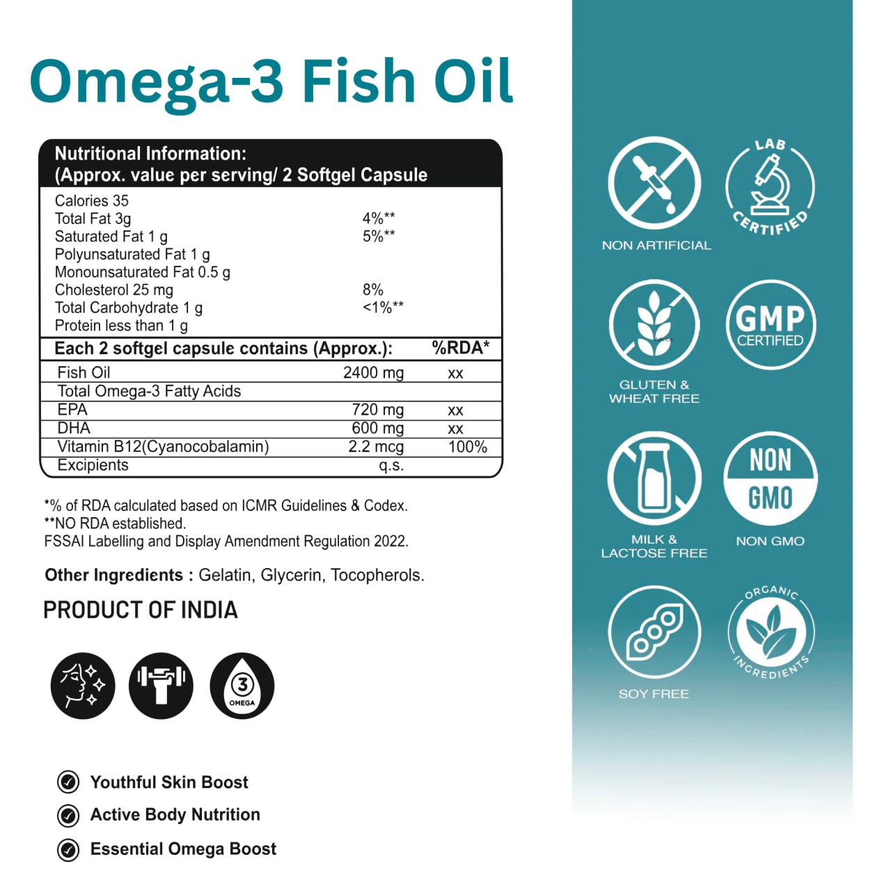 Premium Fish Oil (2400 mg) – Provides essential Omega-3 fatty acids that support overall health.
