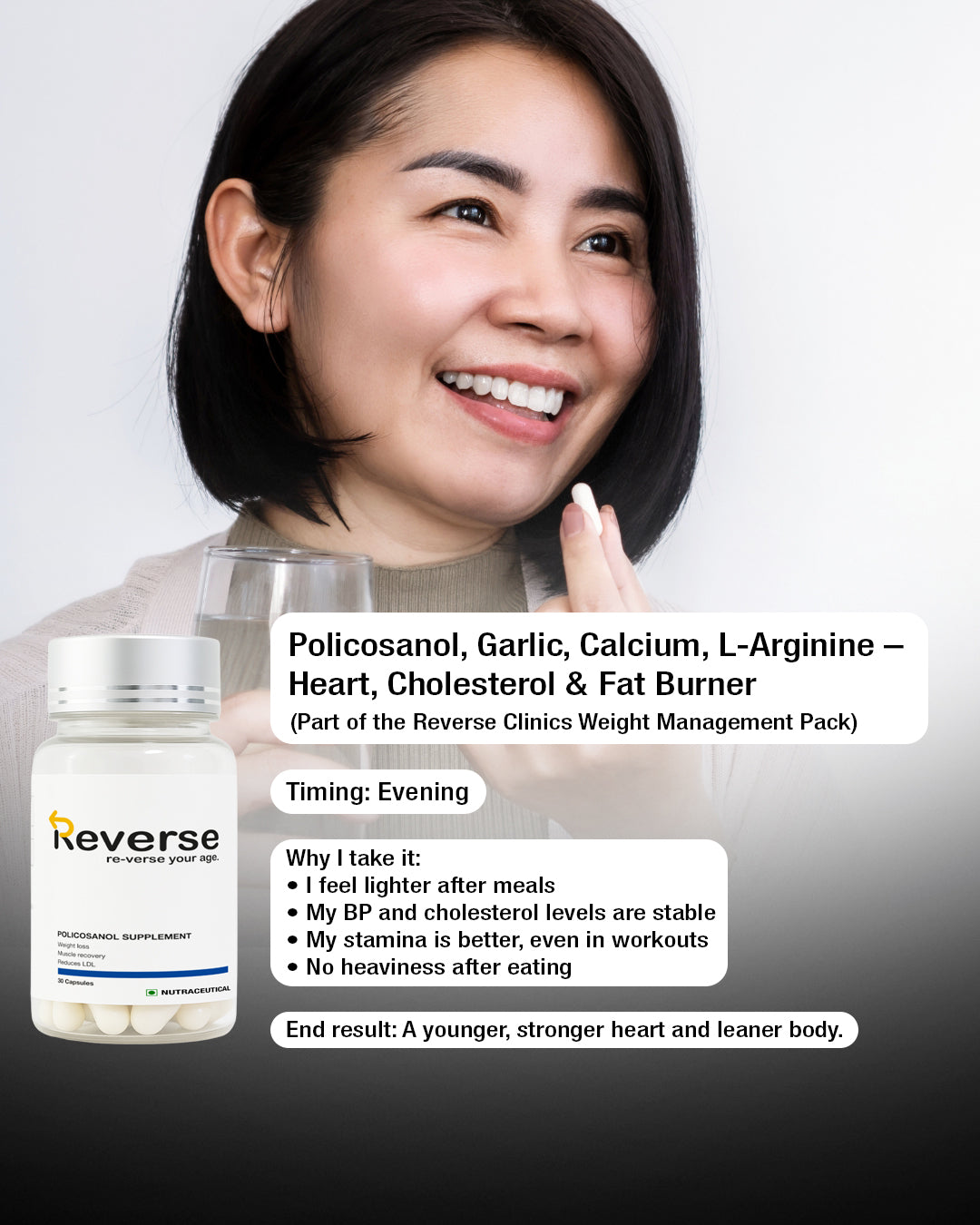 I am utterly delighted with the efficacious Policosanol Supplements from Reverse Clinics. Following a month-long regimen. It improved my cholesterol profiles specifically by lowering LDL and potentially increasing HDL. I noticed a discernible improvement in my health, a palpable surge in energy and weight loss.